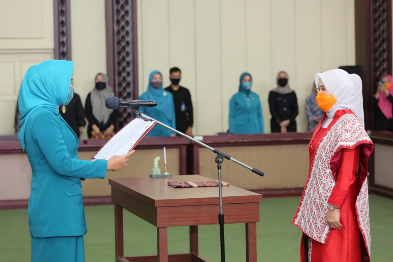 Winarni dilantik langsung oleh Ketua Tim Penggerak PKK Provinsi Lampung, Riana Sari Arinal di Gedung Balai Keratun, Lantai III, Kantor Gubernur Lampung, Selasa (12/5/2020).