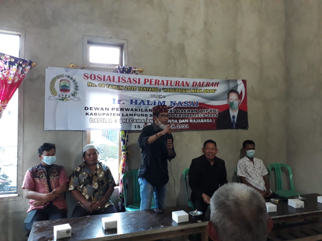 Lampung Selatan — Ir. Halim Nasai Ketua Komisi II Dprd kabupaten Lampung Selatan (Lamsel) mengadakan sosialisasi peraturan Daerah Kabupaten Lampung Selatan Nomor 8 tahun 2020 tentang Kabupaten Layak Anak.