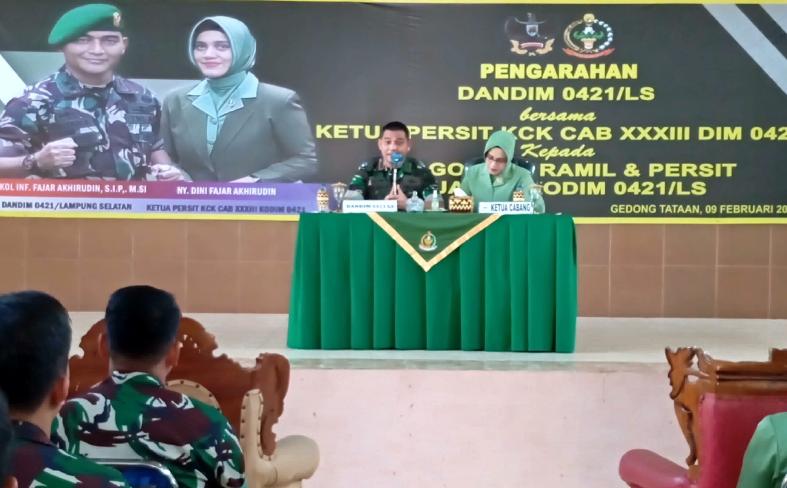 Acara kunjungan kerja Dandim 0421/LS dan pengarahan kepada Anggota Koramil, PNS dan Persit 01/Kdd,02/Gdt,05/Pdc dan 06/Ntr digelar di Aula Musium Transmigrasi Lampung, Gedongtataan, Pesawaran, daerah terdekat dari semua Koramil.