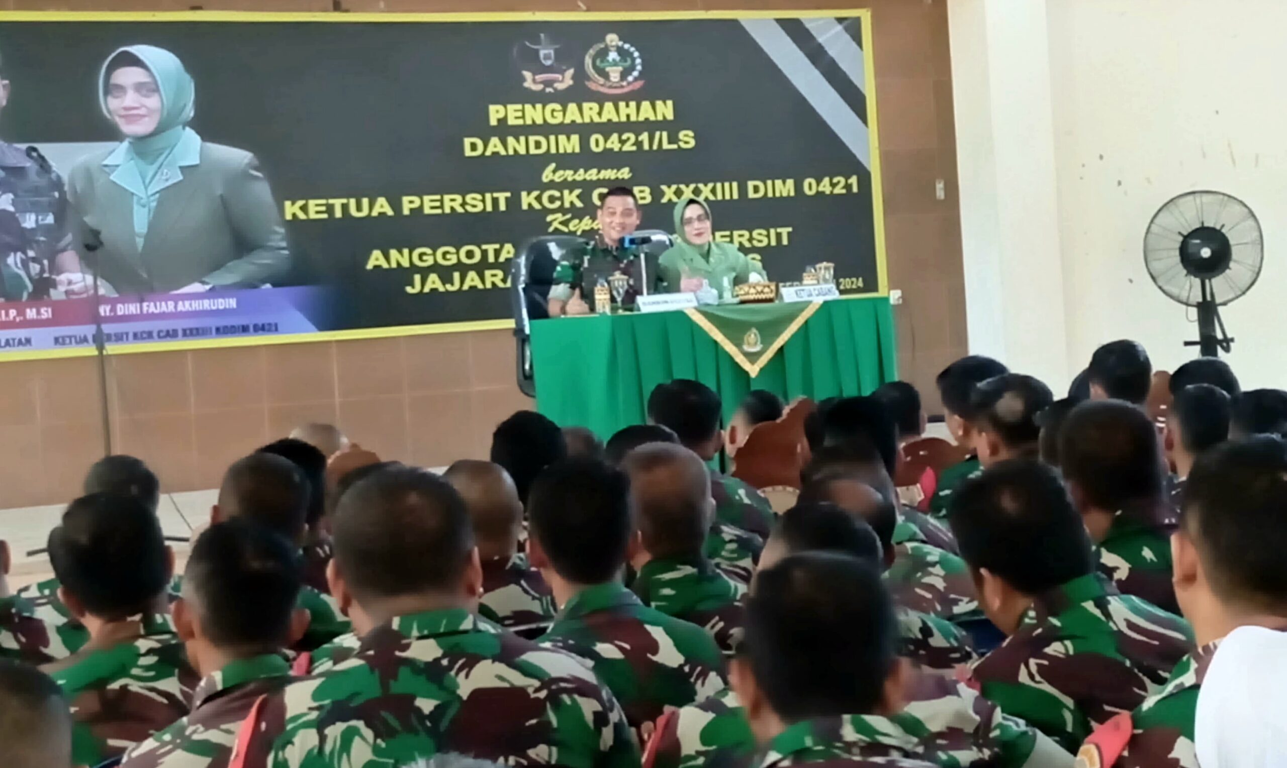 Hadir dalam kegiatan : Letkol Inf Fajar Akhirudin S.I.P.,M.Si (Dandim 0421/LS), Ibu Dini Akhirudin (Ketua Persit KCK Cab XXXIII), Mayor Inf Adi Hartono (Kasdim 0421/LS), Ibu Kristina Adi Hartono (Wakil Ketua Persit KCK Cab XXXIII), Para Perwira Staf Kodim 0421/LS, Danramil 01/Kdd,02/Gdt,05/Pdc dan 06/Ntr, Anggota Babinsa dan Persit.