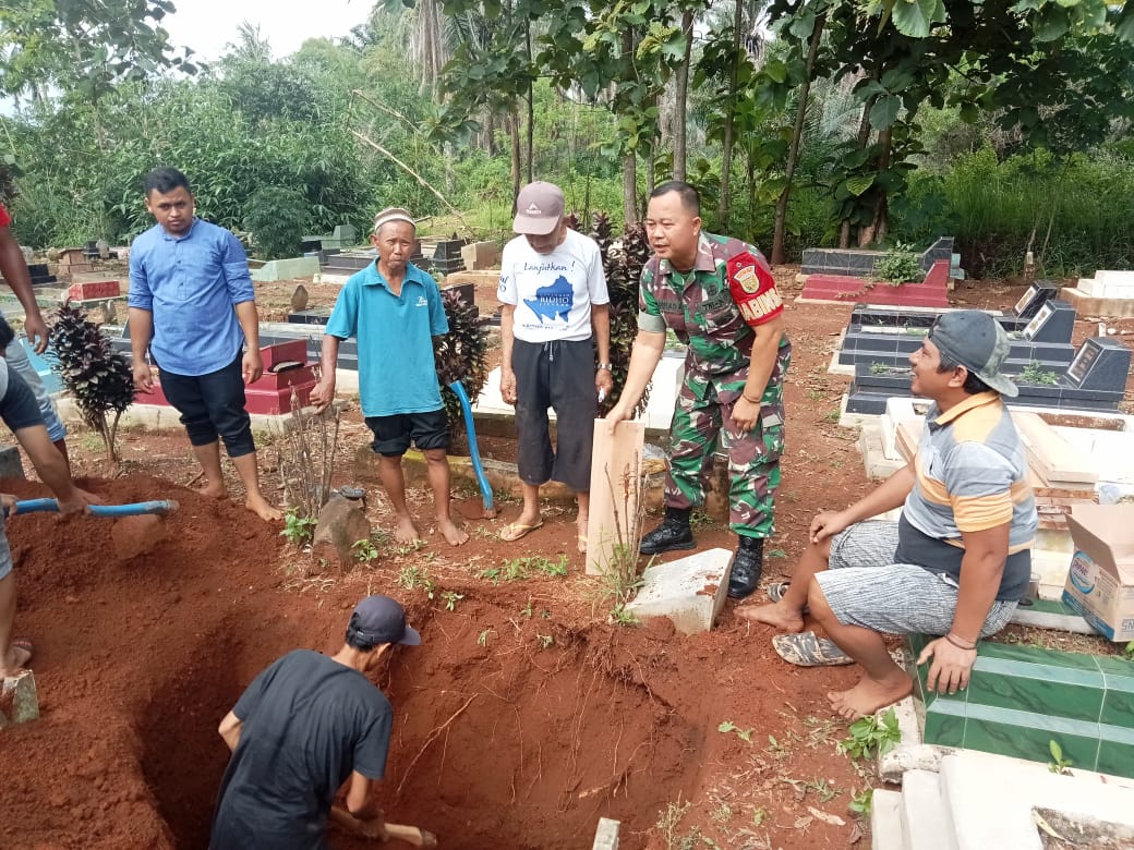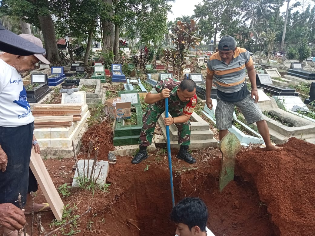 Di Tempat Pemakaman Umum, Babinsa membantu menggali liang kubur bersama warga masyarakat