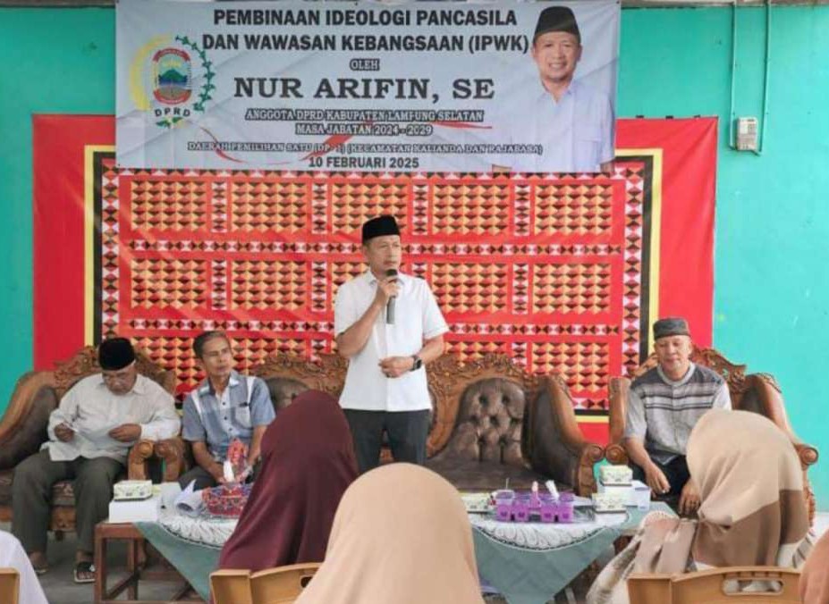 LAMPUNG SELATAN, INFOBERITA.ID – Anggota DPRD Kabupaten Lampung Selatan Nur Arifin, menggelar acara Pembinaan Ideologi Pancasila dan Wawasan Kebangsaan (IPWK) di Desa Kedaton, Kecamatan Kalianda, Kabupaten Setempat, pada Senin (10/02/2025).