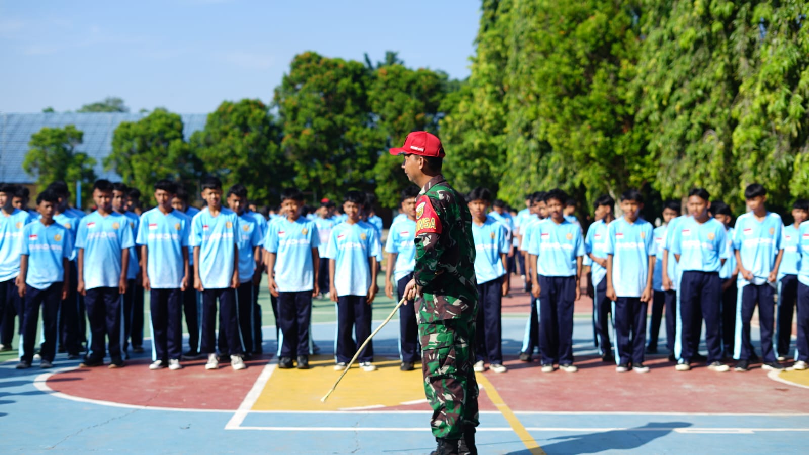 Babinsa Koramil 421-06/Natar, Serma Feri Agustian, Serka Ayatul Komini, Serda Astajudin, Serda Deki Juliansyah dan Kopka Eviyanto mengisi kegiatan Masa Pengenalan Lingkungan Sekolah (MPLS) dengan memberikan materi Wawasan Kebangsaan, Ideologi Pancasila serta Pelatihan PBB kepada siswa-siswi baru SMK Swadhipa 2 Natar yang berlokasi di Desa Bumisari, Kecamatan Natar, Kabupaten Lampung Selatan, Selasa (08/07/2025).