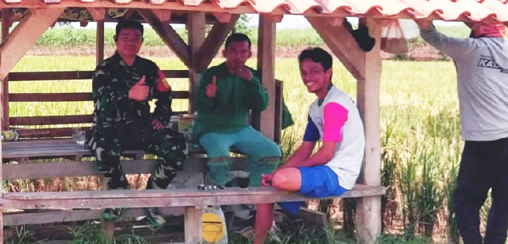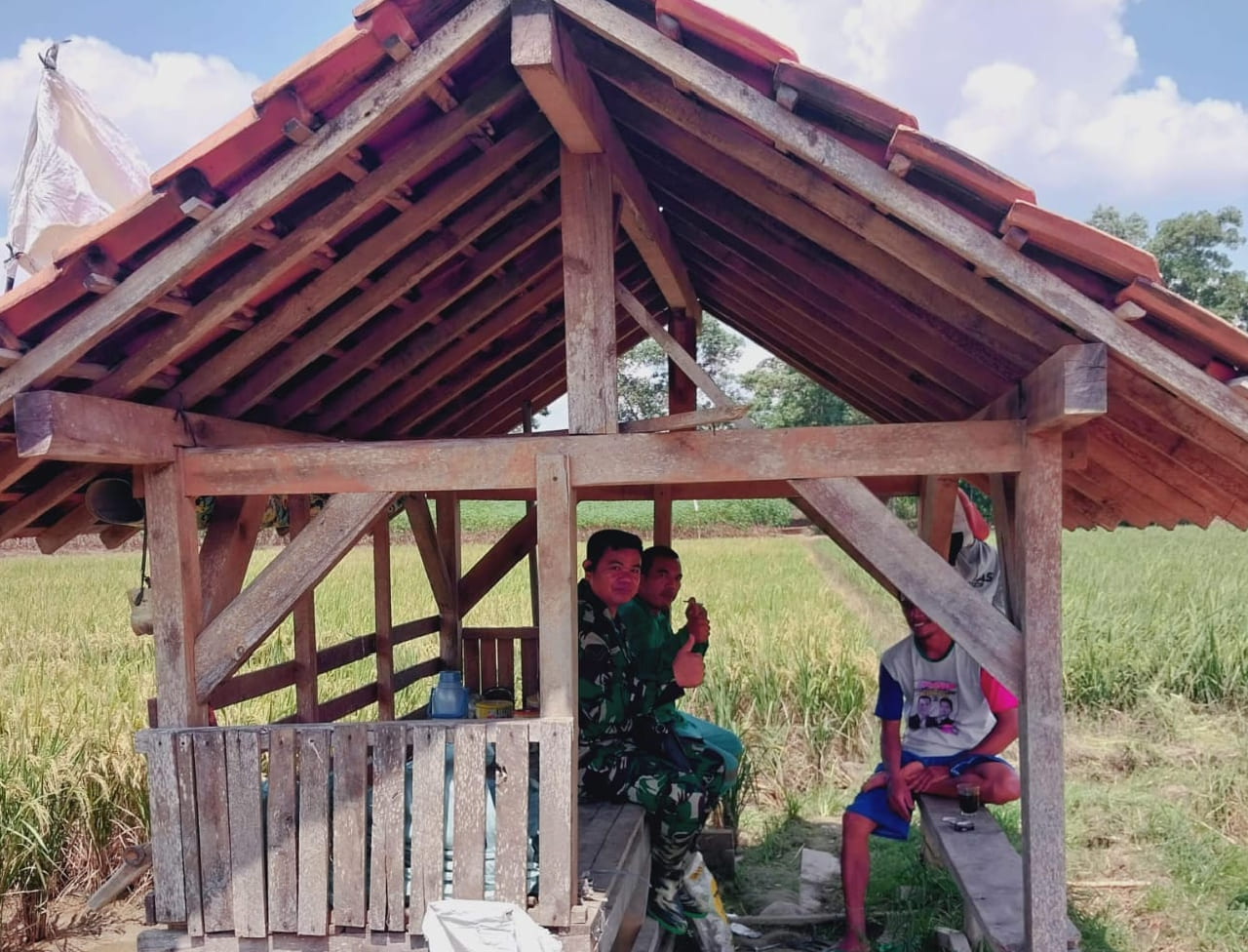Sembari santai sambil beristirahat di gubuk milik Bapak Sugimin terlihat suasana ceria dan humanis Babinsa bersama para Petani, berinteraksi memperbincangkan dalam upaya meningkatkan hasil pertanian baik padi, jagung, dan tanaman buah seperti buah alpukat selain itu juga membahas situasi keamanan kebun milik warga.