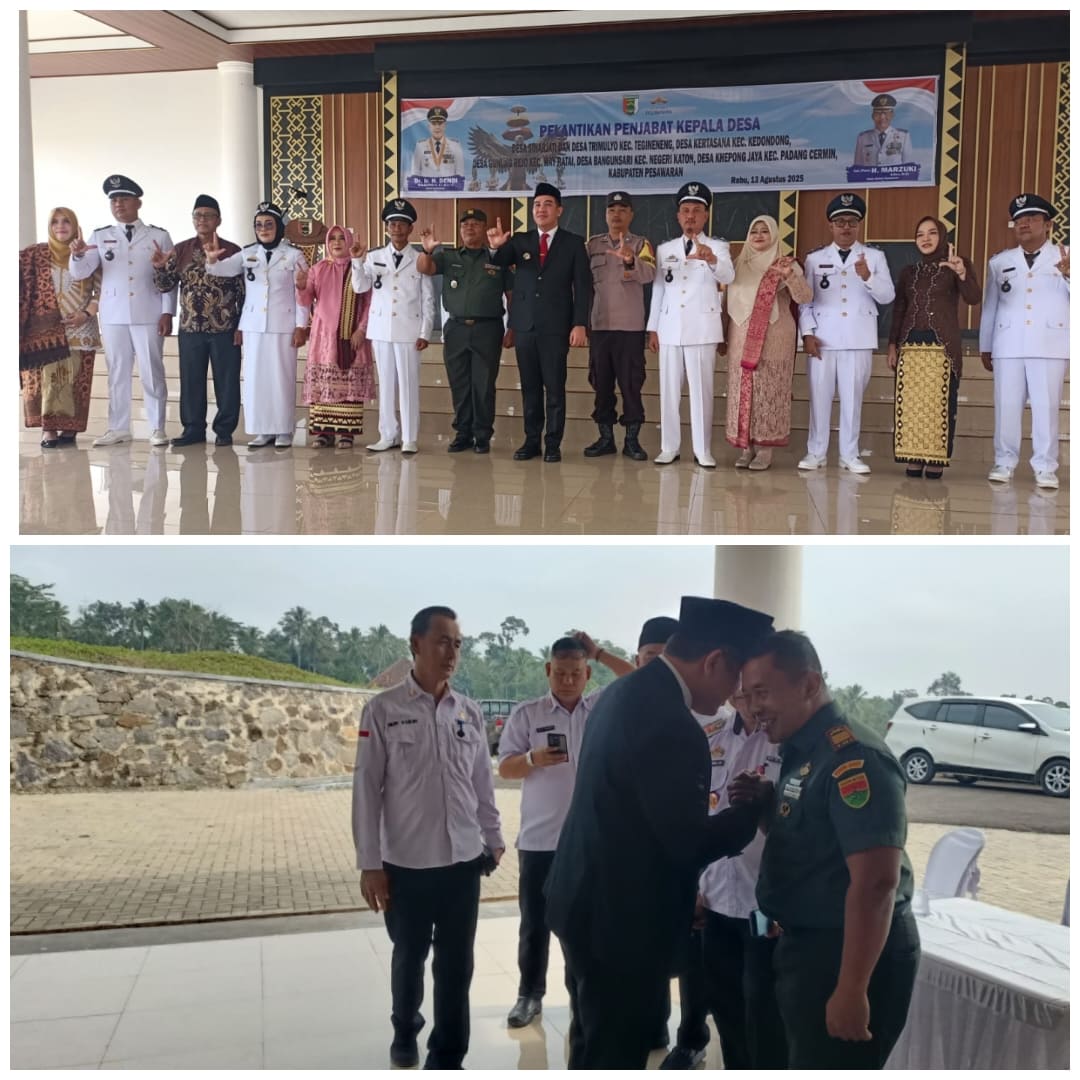 LAMPUNG, INFOBERITA – Danramil 421-06/Natar, Kapten Inf Rudi Teguh Prasetyo menghadiri acara Pelantikan Penjabat Kepala Desa (Pj) Sinar Jati dan Trimulyo Kecamatan Tegineneng dan Pejabat Kepala Desa lainnya di wilayah Kabupaten Pesawaran yang dilaksanakan di Rumah Dinas Jabatan Bupati Pesawaran Desa Kurungan Nyawa Kecamatan Gedong Tataan, Kabupaten Pesawaran, Rabu (13/08/2025).