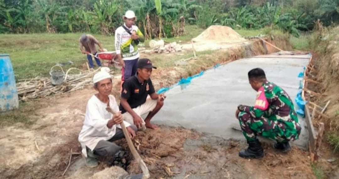 Babinsa dan warga tampak begitu bersemangat dalam pembangunan jalan penghubung antar Dusun tersebut, dengan kompaknya mereka mengolah material pasir, batu dan semen, kemudian dilanjutkan dengan proses pengecoran jalan, semuanya bahu membahu untuk mengubah jalanan di Dusun tersebut yang semula berupa tanah dan batu yang tidak rata, dan bila hujan turun, akan muncul genangan air, menjadi jalanan yang mulus dan lebih aman dilalui warga.