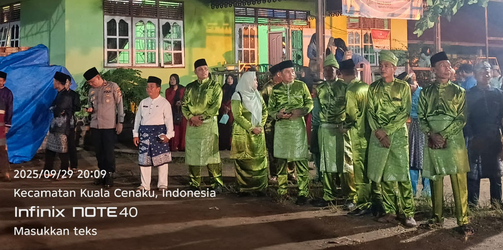 Dari tingkat kecamatan, hadir Camat Kuala Cenaku Suprianto, SE, Kapolsek Kuala Cenaku IPTU Awet L. Nainggolan, perwakilan Danramil 01/Rengat, para Kepala Desa, BPD, ibu-ibu PKK, peserta kafilah, serta ratusan masyarakat yang memadati halaman masjid.