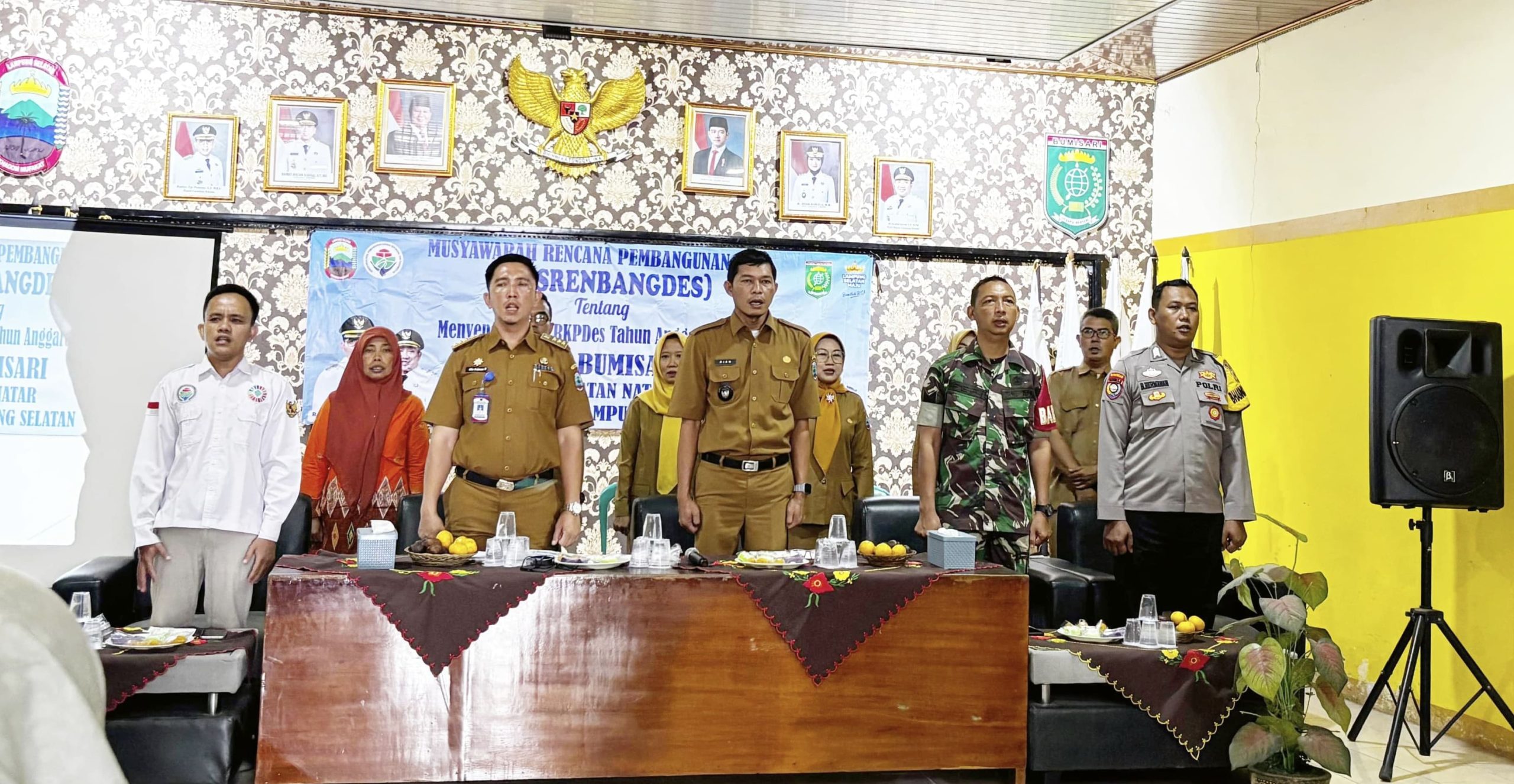 Dalam rangka mendukung Pembahasan Pembangunan dan Penyusunan Rencana Kerja Pemerintah Desa (RKPDes) Tahun Anggaran 2026, Babinsa Koramil 421-06/Natar, Kodim 0421/Lamsel, Serma Feri Agustian menghadiri kegiatan Musyawarah Perencanaan Pembangunan (Musrenbang) yang bertempat di Aula Kantor Desa Bumi Sari, Kecamatan Natar, Kabupaten Lampung Selatan, Senin (13/10/2025).