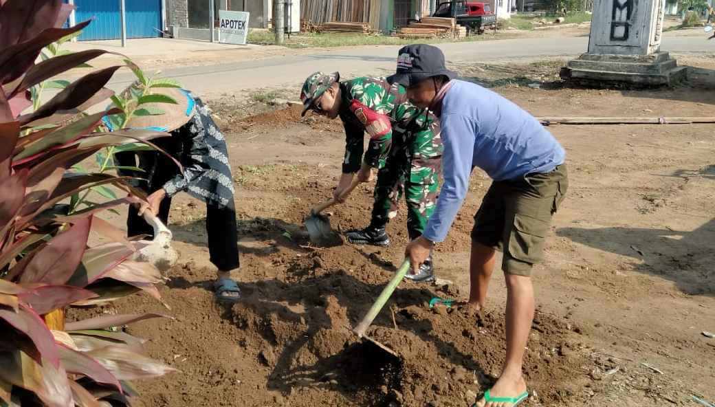 Tunjukkan Semangat gotong royong, Babinsa dan Warga Bersihkan Lingkungan Desa