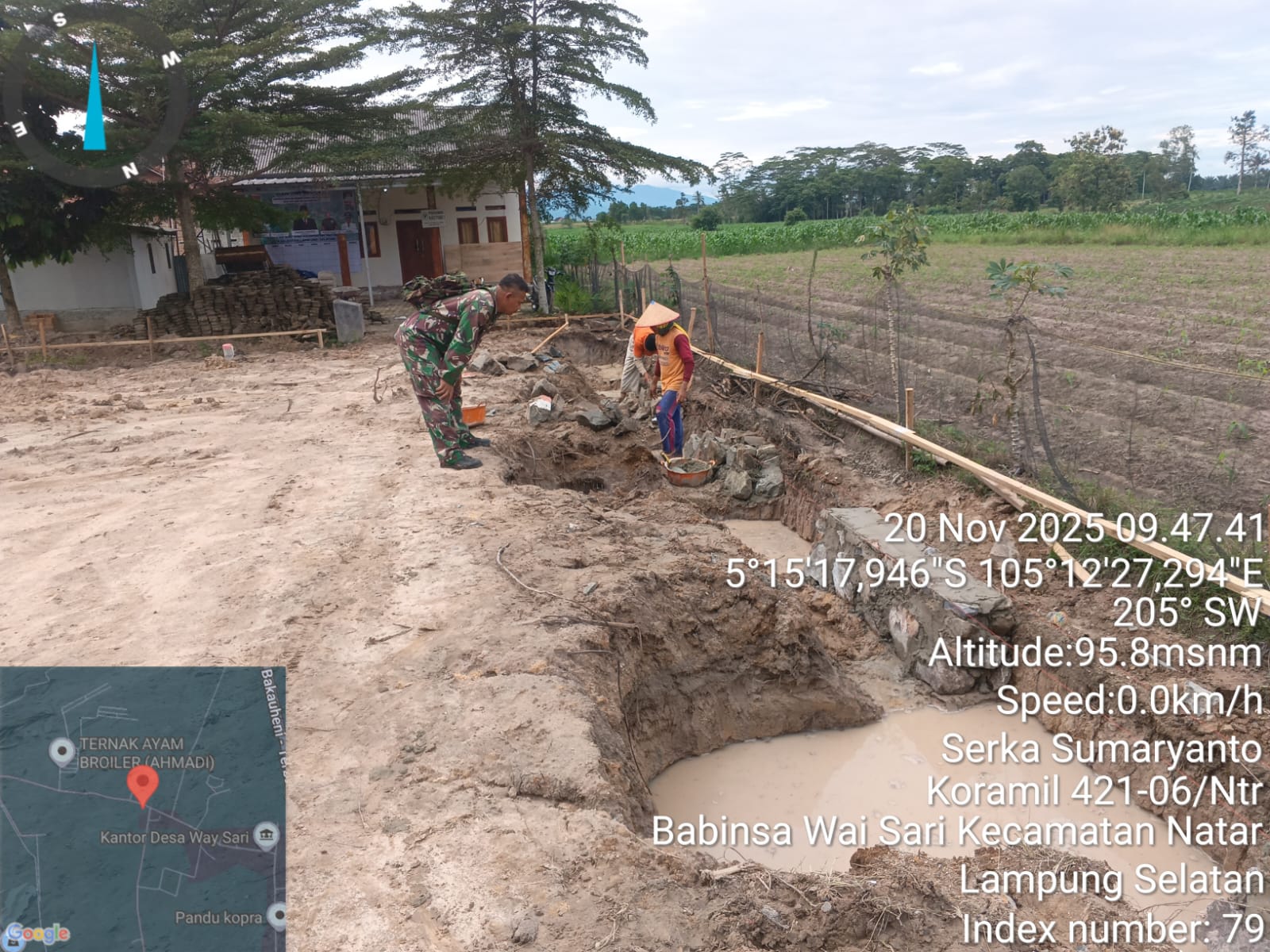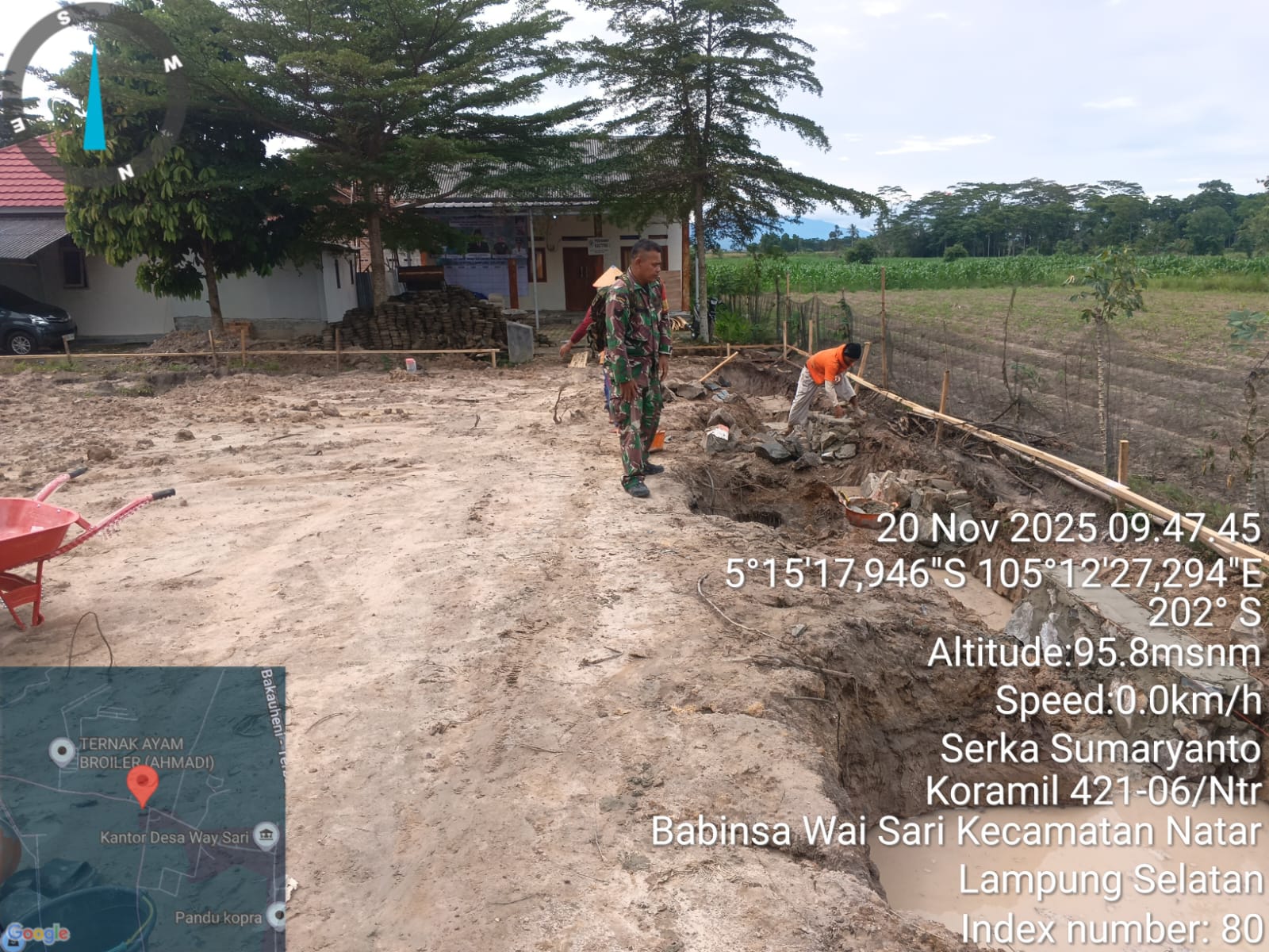 Babinsa Desa Way Sari Serka Sumaryanto menegaskan bahwa setiap tahapan pembangunan akan terus dipantau demi memastikan hasil yang berkualitas, Ia juga menyampaikan bahwa pembangunan KDKMP merupakan bagian dari usaha bersama untuk membuka peluang usaha baru, meningkatkan pendapatan masyarakat, dan mendorong keberlanjutan ekonomi Desa.