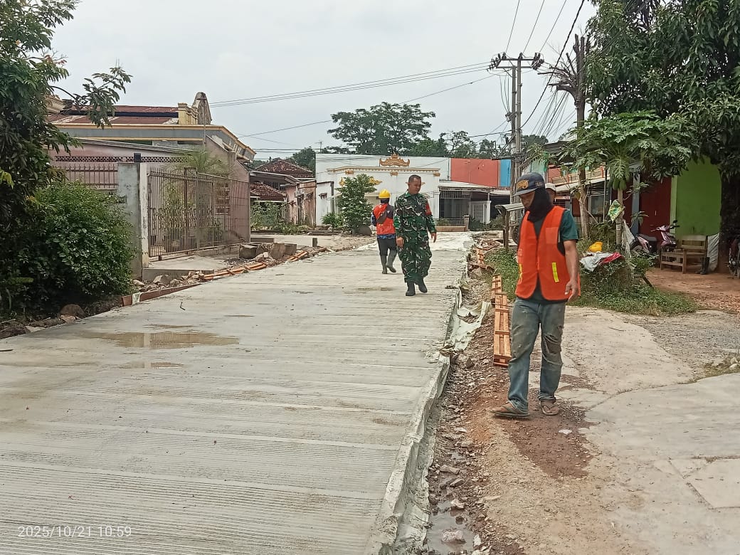 Sebagai wujud kepedulian terhadap kelancaran pembangunan infrastruktur dan kenyamanan masyarakat, Babinsa Koramil 421-06/Natar, Kodim 0421/Lamsel, Sertu Ahmad Anuar, melakukan monitoring kegiatan pembangunan jalan rabat beton di Dusun Tanjung Waras Desa Merak Batin, Kecamatan Natar, Kabupaten Lampung Selatan, Sabtu (08/11/2025).