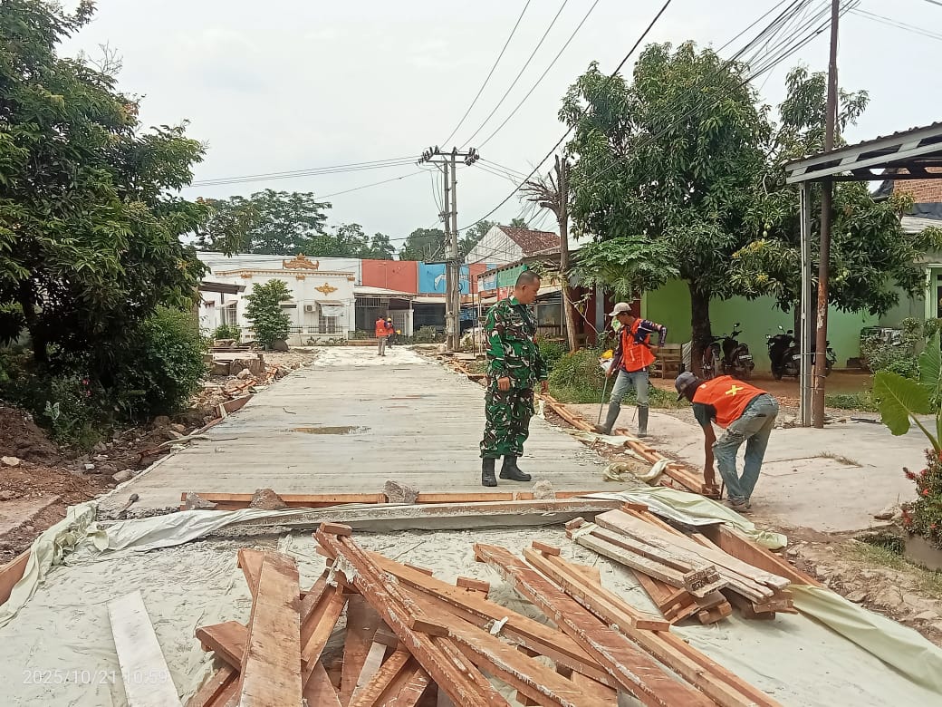 Sebagai wujud kepedulian terhadap kelancaran pembangunan infrastruktur dan kenyamanan masyarakat, Babinsa Koramil 421-06/Natar, Kodim 0421/Lamsel, Sertu Ahmad Anuar, melakukan monitoring kegiatan pembangunan jalan rabat beton di Dusun Tanjung Waras Desa Merak Batin, Kecamatan Natar, Kabupaten Lampung Selatan, Sabtu (08/11/2025).
