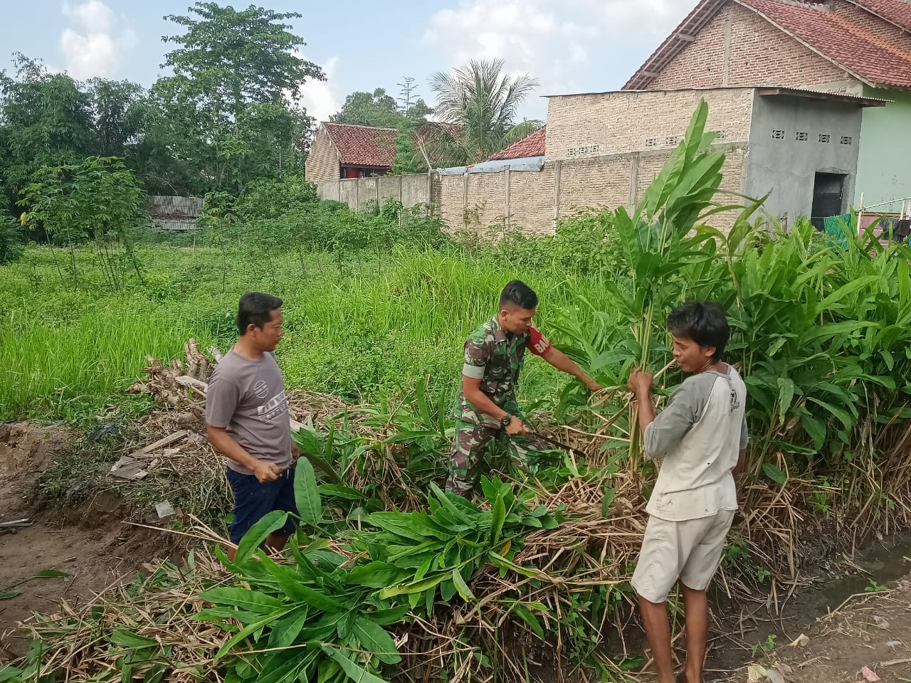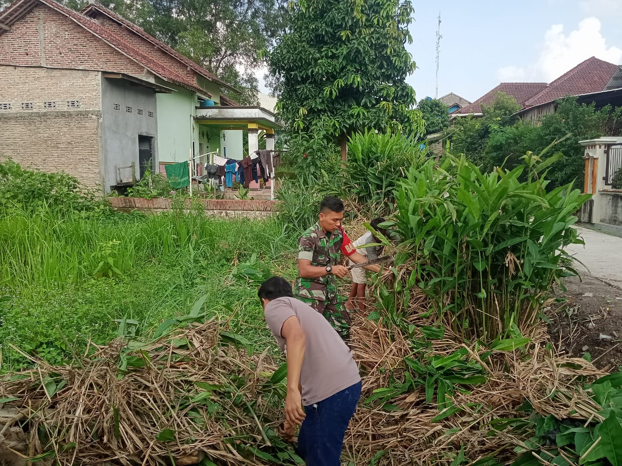 Ciptakan Lingkungan Bersih, Babinsa Ajak Warga Gotong Royong Bersihkan Rumput Liar