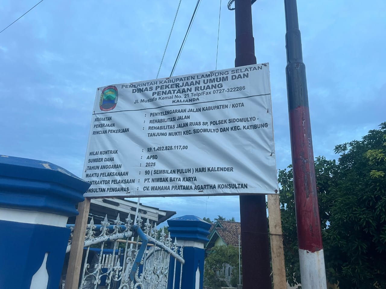 LAMPUNG SELATAN, INFOBERITA—Proyek rehabilitasi jalan ruas SP Polsek Sidomulyo–Tanjung Mukti milik Pemerintah Kabupaten Lampung Selatan dengan nilai kontrak Rp 1.492.828.117,00 kini disorot publik. Pekerjaan yang dibiayai melalui APBD Tahun Anggaran 2025 tersebut dilaksanakan oleh PT Nimbak Baya Karya dengan pengawasan CV Wahana Pratama Agartha Konsultan, berdurasi 90 hari kalender.